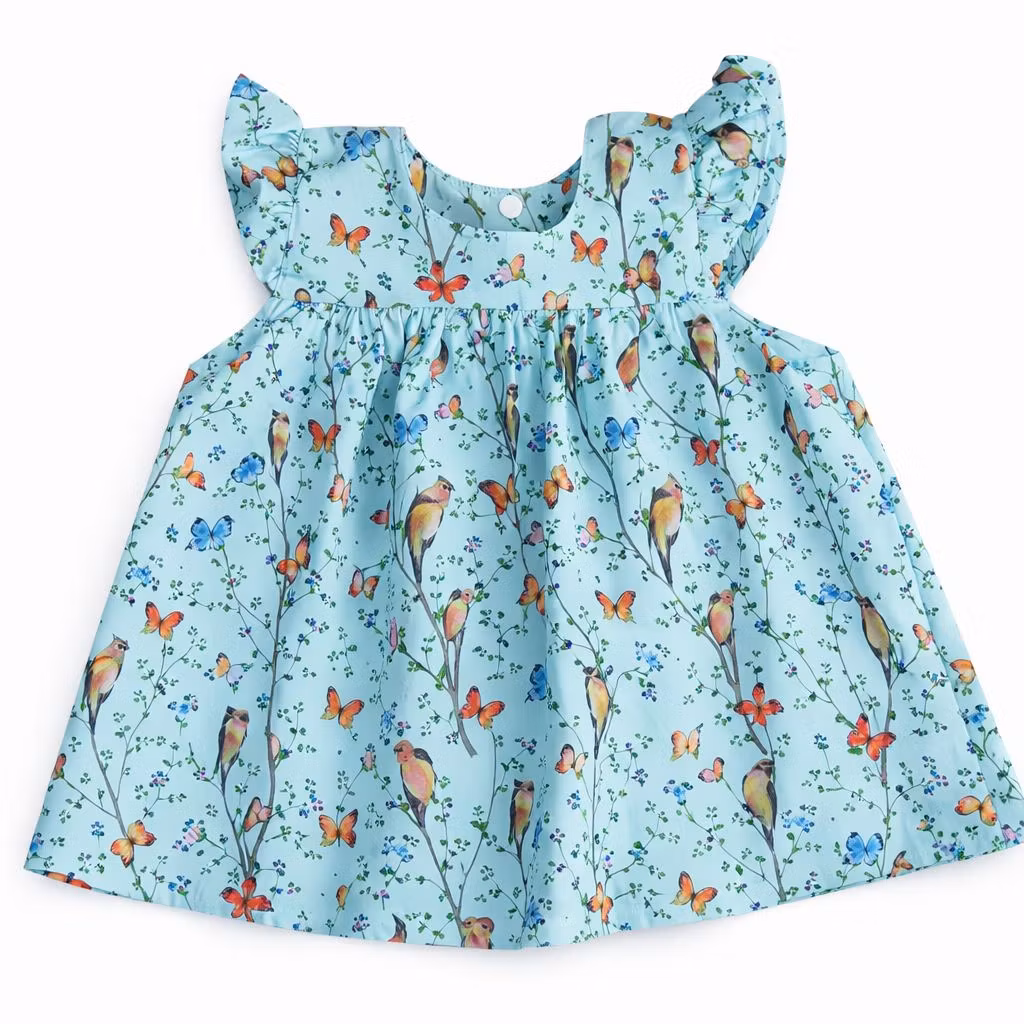 Förklädsklänning - Fjärilar - ekologisk bomullspoplin