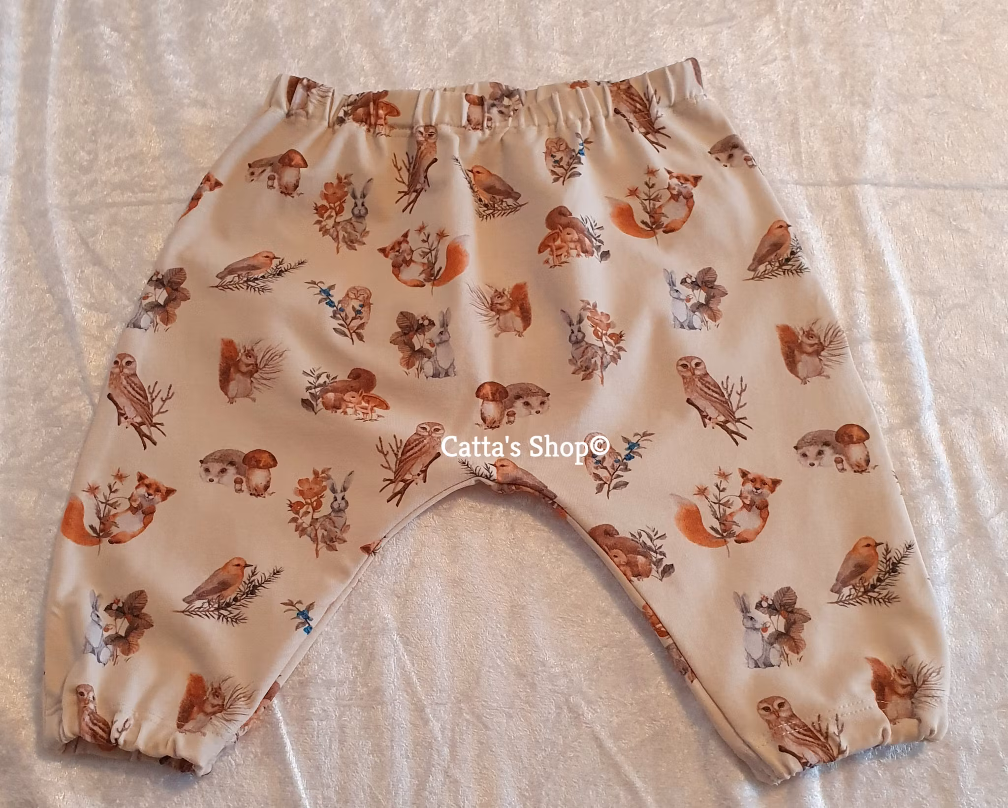 En rymlig byxa med skogens smådjur, sydd i en härlig skön ekologisk OEKO-TEX/GOTS certifierad jersey/trikå.