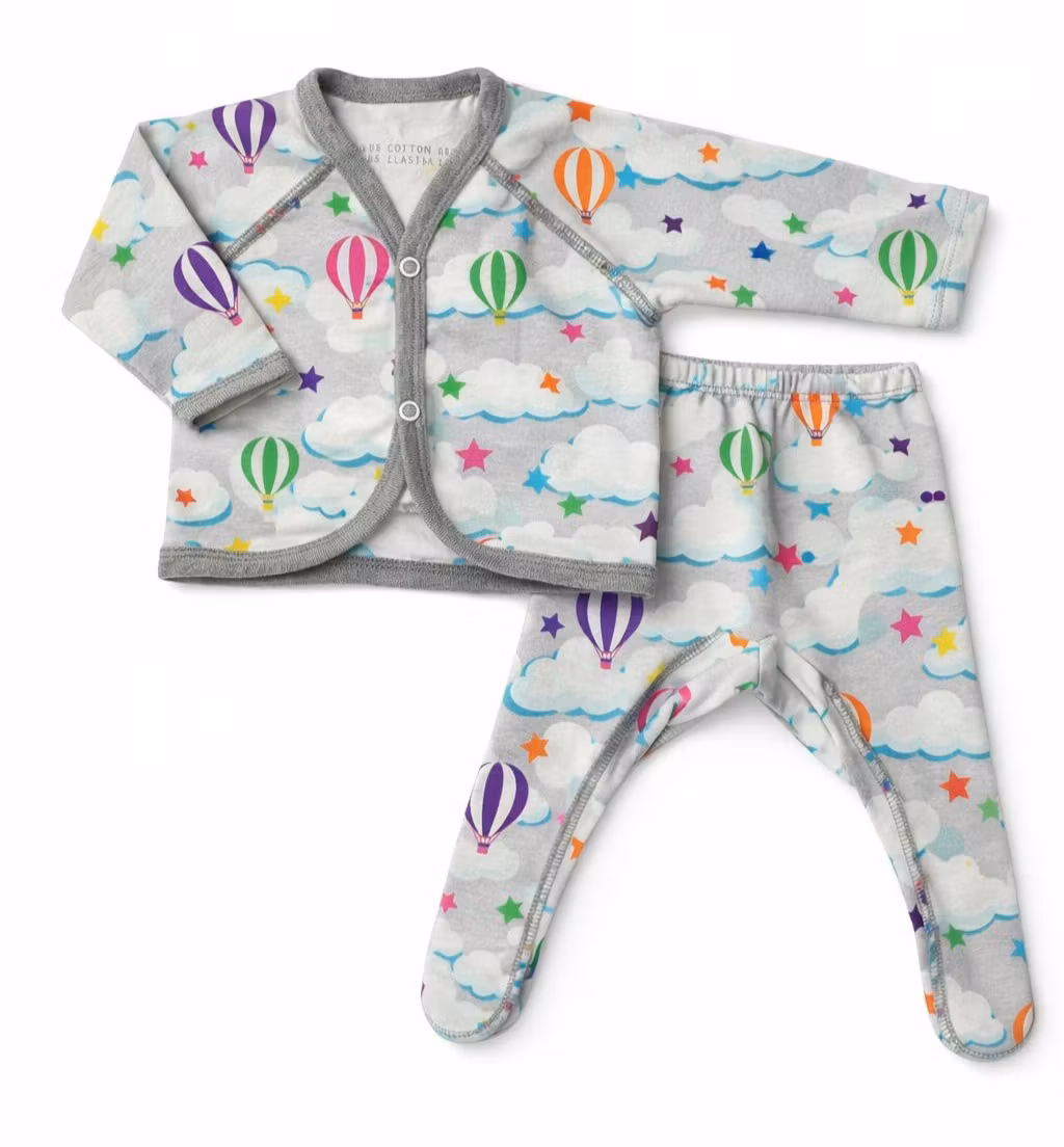 Tröja med knäppning och byxa med fot till prematura baby sydd i en härlig skön ekologisk OEKO-TEX/GOTS certifierad jersey/trikå, plaggen är sydda med utanpåliggande sömmar.