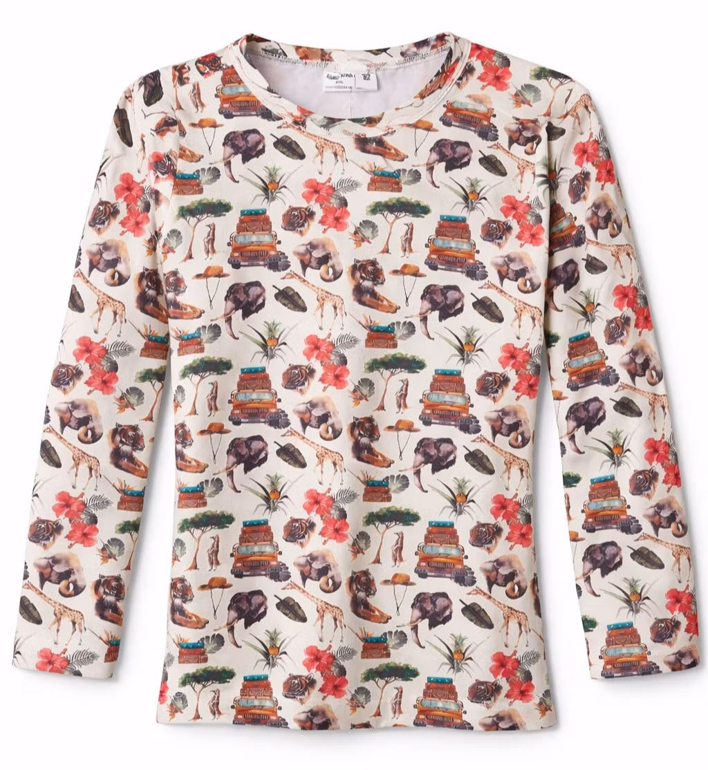 Tröja med motiv av exotiska djur i en härlig skön ekologisk OEKO-TEX/GOTS certifierad jersey/trikå.