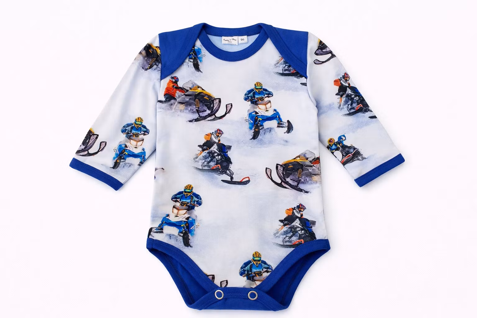 Babybody med snöskotrar – Ekologisk babybody i mjuk bomull