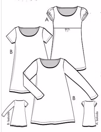 Välj mellan - antingen Tunika, avskuren under bysten med lite rynk och liten kort puffärm eller Tunika i A-form, med lång eller kort ärm- för att matcha din stil och behov.