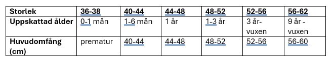 Storleken kan variera något beroende på material. Hattar sydda i vävt tyg upplevs som något fastare i passformen, medan modeller i trikå är mer följsamma och töjbara.