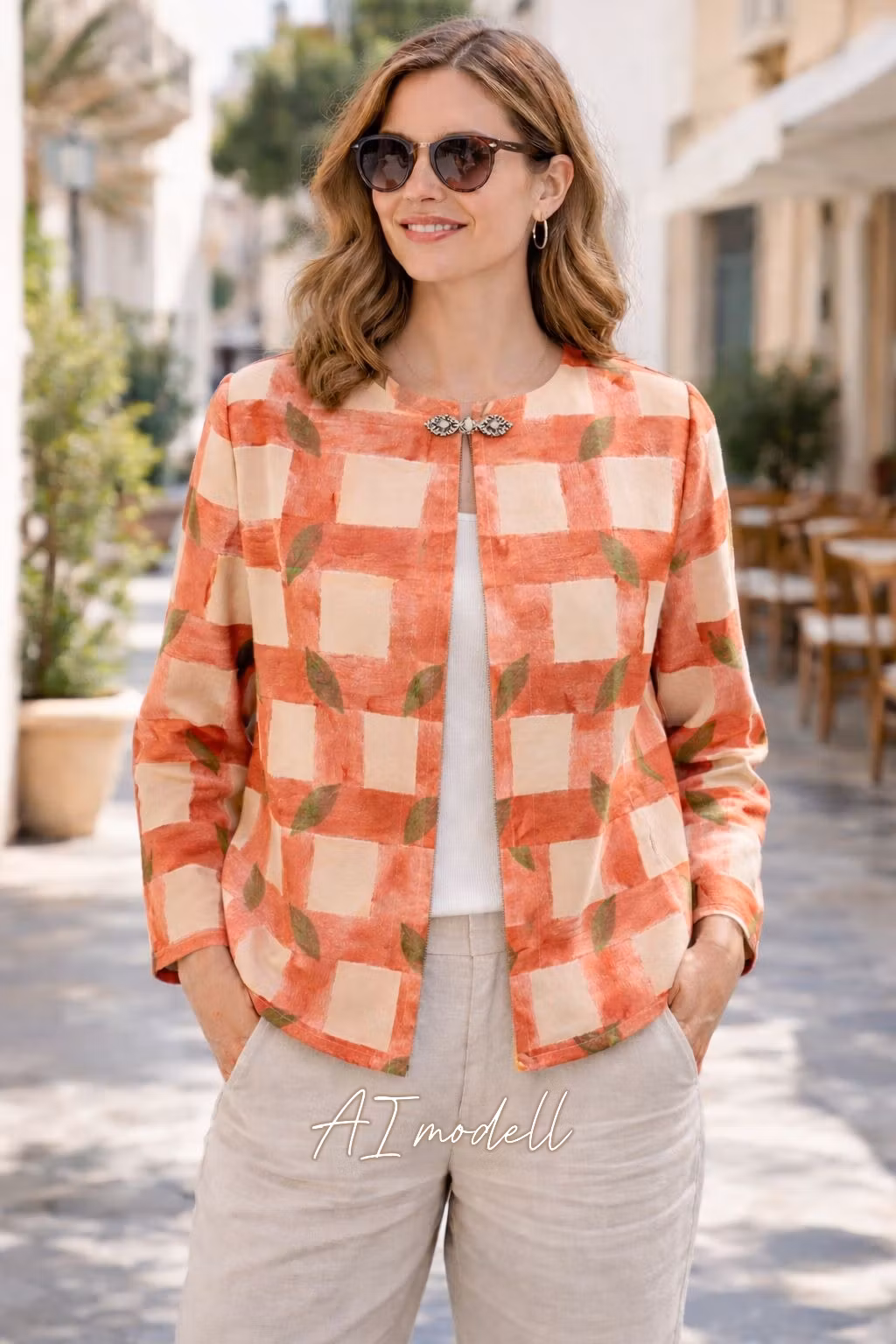 Sommarjacka med textiltryck (brun/beige mönster)