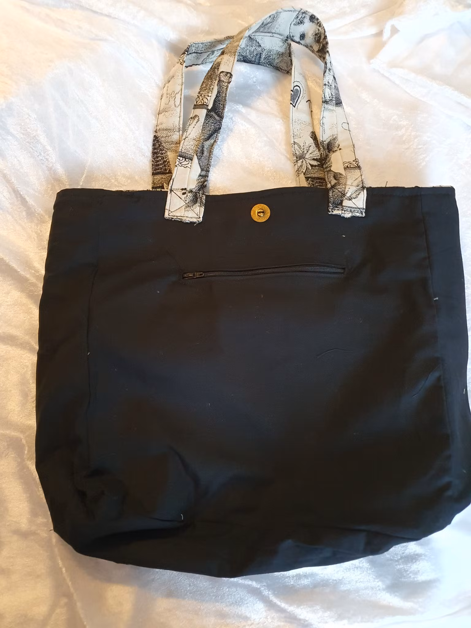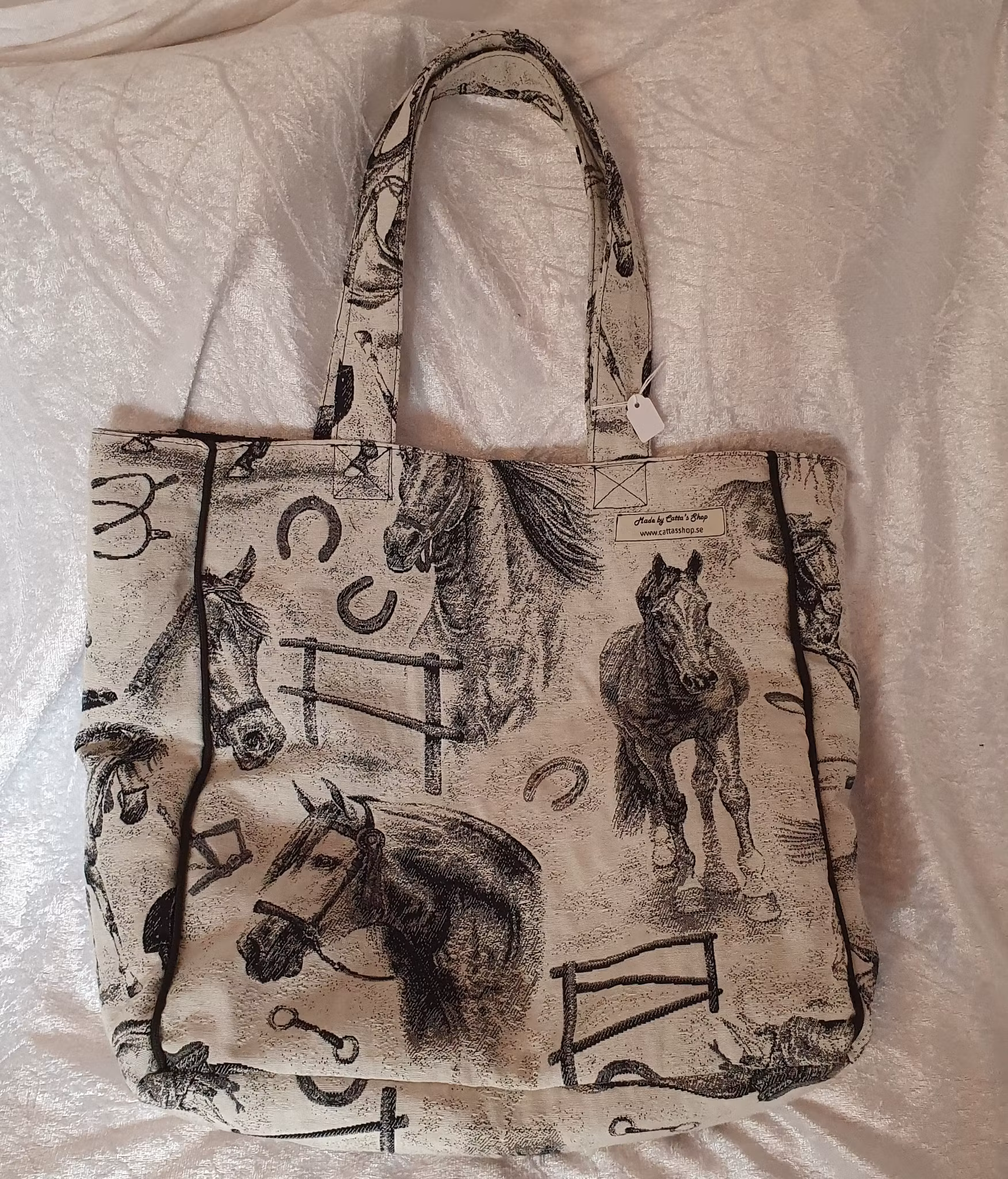 Väskan är fodrad och har magnetlås, två innerfickor varav en med dragkedja.